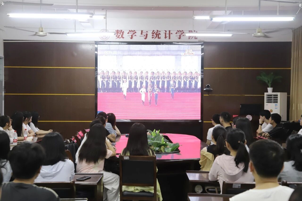 阅兵活动按照阅兵式、分列式两个步骤进行。阅兵式环节,受阅部队在长安街列阵,光荣接受中共中央总书记、国家主席、中央军委主席习近平的检阅。分列式环节,按空中护旗梯队、徒步方队、战旗方队、装备方队、空中梯队的顺序,依次通过天安门广场。那铿锵有力的声音、那踏破天际的正步,气势恢宏、威武雄壮,令每一位老师和同学都无比自豪。大家在观看过程中不断响起欢呼声和掌声,满怀豪情溢于言表。