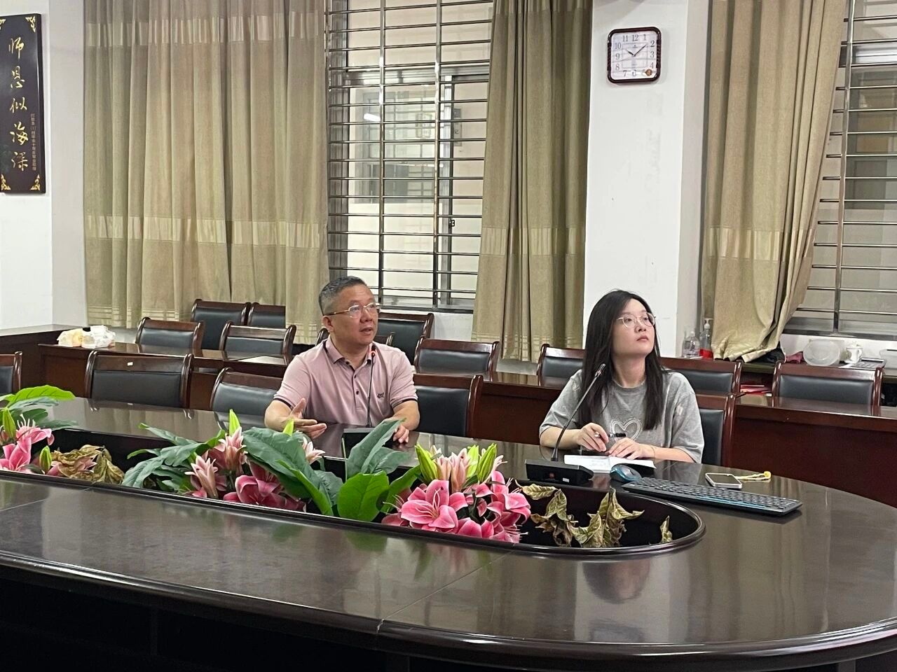 最后,胡海智副书记向同学们提出了两点期望:一是同心协力共筑成长基石。希望同学们互帮互助,扎实筑牢语言基础、专业基础,锻炼并提升生活能力。二是同频共振勇担时代使命。要主动关注国家政策走向与行业发展趋势,将个人追求融入时代发展大局,同时紧密跟进学校与学院的发展动态,积极参与校园建设,在见证集体发展的过程中找准自身定位,实现个人成长与国家、校院发展的同频共振,真正做到与国家同呼吸、与校院共命运。