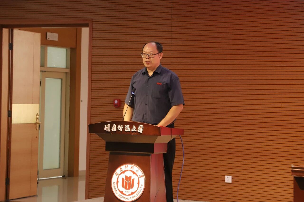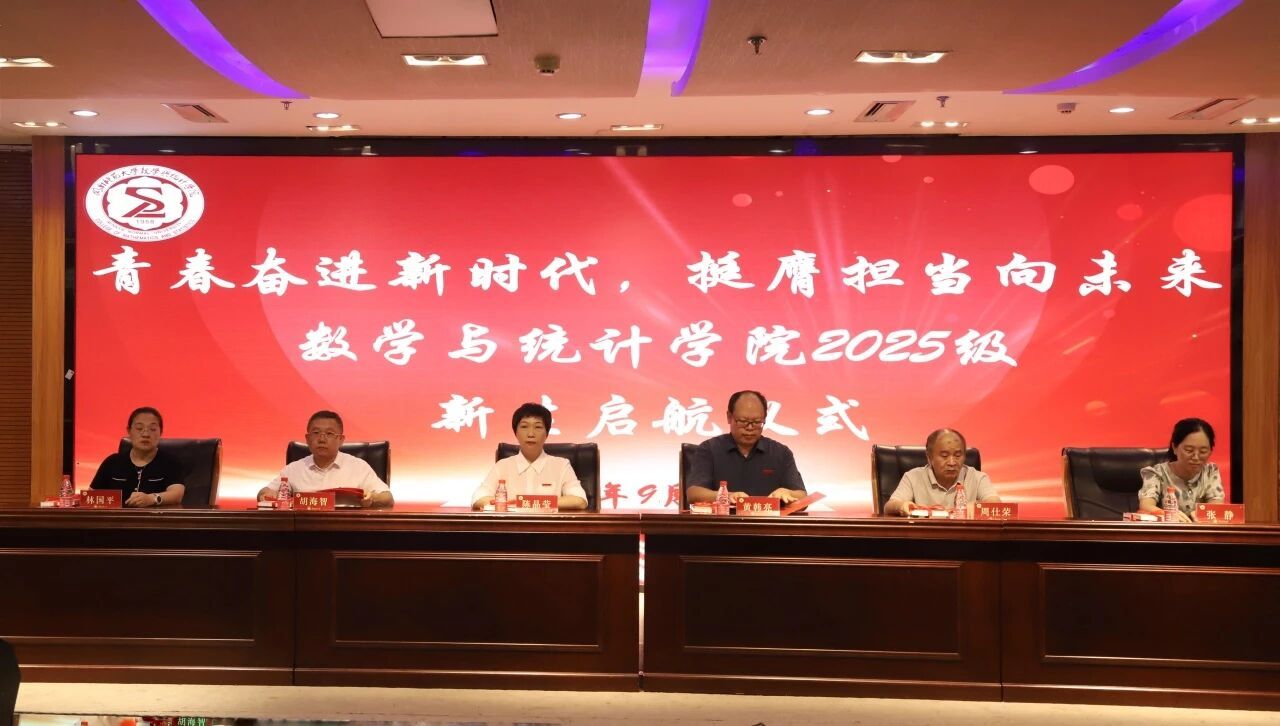 黄韩亮代表学院对2025级新生表示热烈的欢迎和衷心的祝贺,介绍了学院60余年的发展成果,其中每一步都镌刻着数统人的奋斗与担当。他表示,新生的到来为学院发展注入新鲜蓬勃的动力,并围绕“大学学习与成长”提出建议,深耕专业知识,筑牢学术基础,培养独立思考能力,积极参与实践,教授勉励新生以惜时为念,以热爱为舟,在数学海洋中探索无限可能。