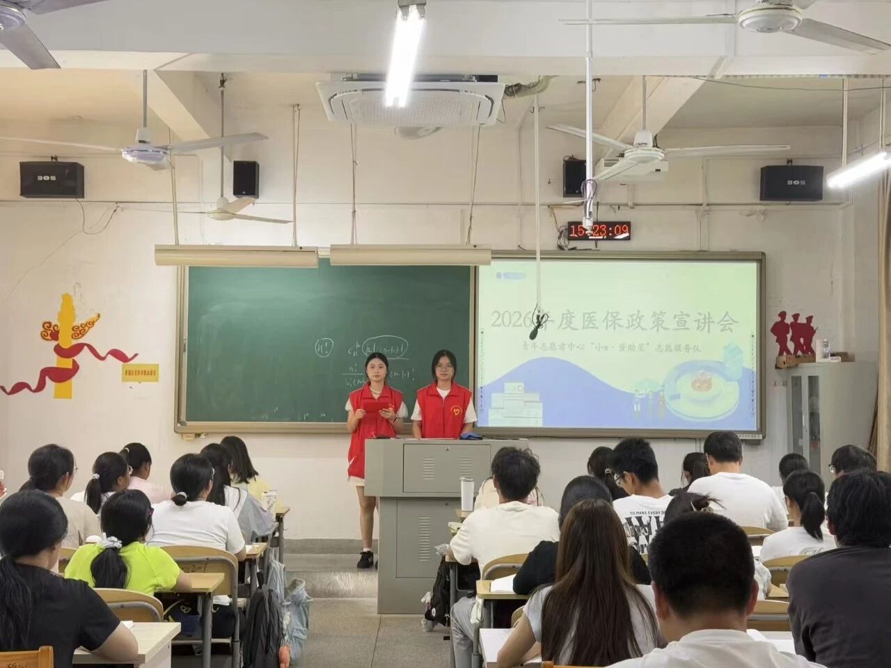 新生专场宣讲以“全覆盖、零距离”为目标,服务队分批次深入25级新生班级与宿舍,开展分层分类精准宣讲。班级宣讲环节,队员们结合精心准备的PPT,用通俗易懂的语言,系统讲解参保缴费标准、待遇享受期限、登记办理流程、线上线下缴费方式及医保报销范围等核心内容,并结合问答环节确保政策信息精准传递、全面覆盖。
