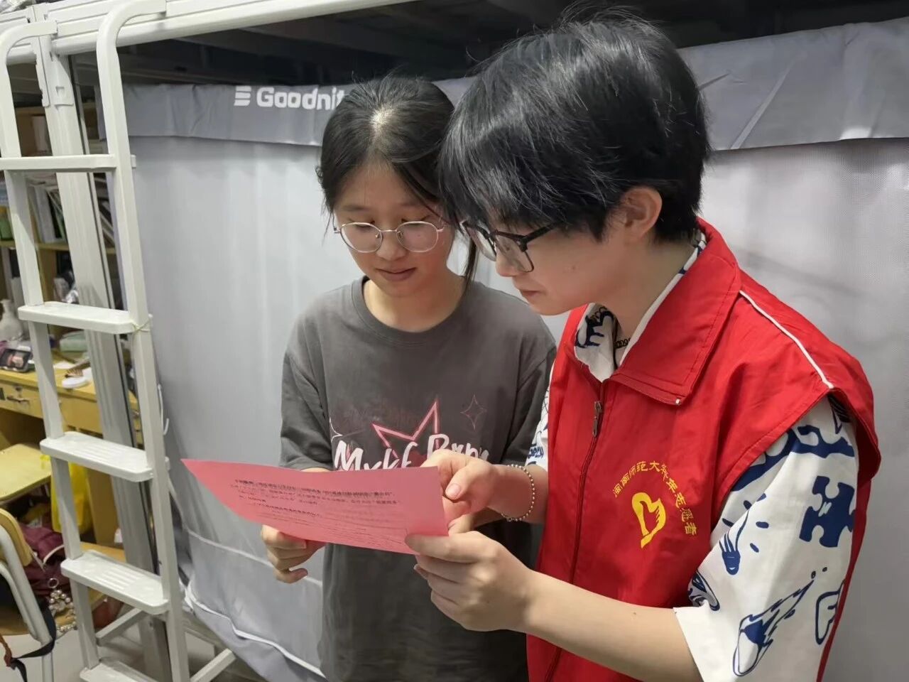 为消除新生个体疑惑,服务队同步分组深入新生宿舍,开展“点对点”个性化答疑。在轻松融洽的氛围中,队员们耐心解答政策细节问题,将政策关怀直接送到新生身边,切实解决他们的心头之困。