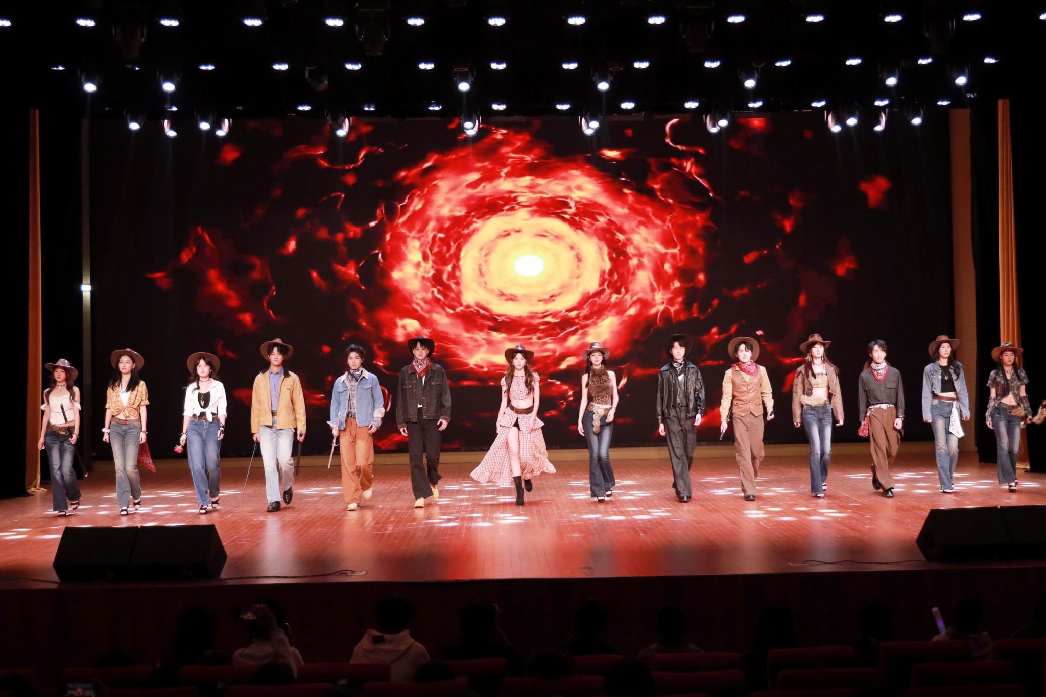 艺术团模特队演绎《西部旷野》,队员们迈着从容大气的台步,眼神中透出坚毅自信,完美展现了开拓者无惧险阻、一往无前的精神气概,传递出勇敢开拓、自强不息的担当风貌。