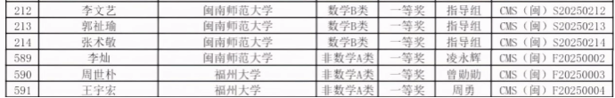 本次福建赛区初赛于2025年11月8日举行,我校共组织791名学生积极参赛。在激烈角逐中,我校学子凭借扎实的数学功底与出色的竞赛能力,在专业组、非专业组A类、非专业组B类中均取得突出成绩。其中,专业组共获评一等奖25名、二等奖35名、三等奖75名;非专业组A类获评一等奖4名、二等奖9名、三等奖25名;非专业组B类获评一等奖2名、二等奖6名、三等奖5名。